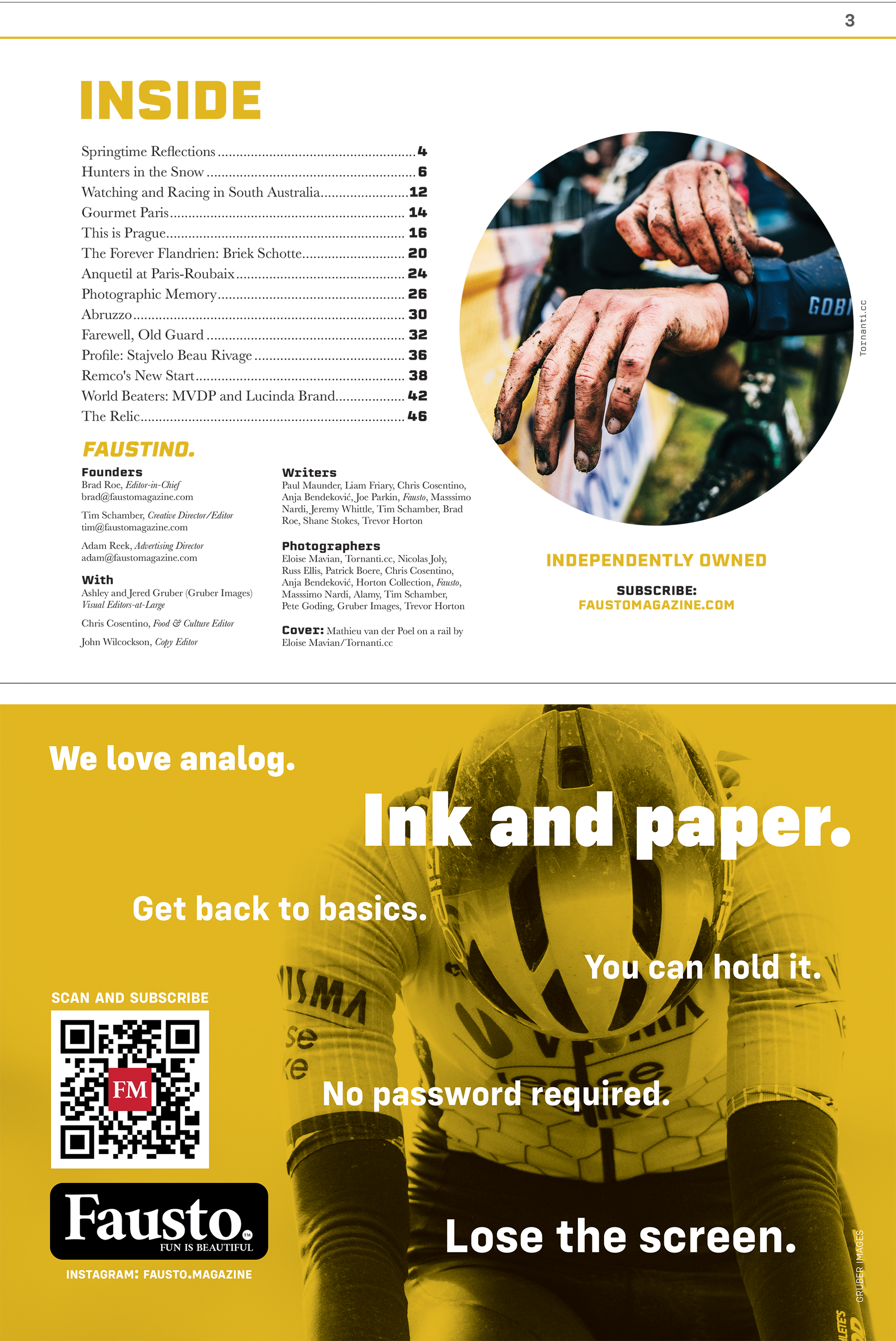 This 48-page, 11 x 17 newspaper is a keeper. Printed on 60 lb Lynx Opaque paper (trust us it’s modern and clean) features an eclectic mix of food adventures in Paris and Prague, a cross photo extravaganza, an exclusive interview with Remco Evenepoel, an in-depth look at the possibly the most famous Flandrien of all time, an ode to print photography, a visit to Abruzzo and much more. You don’t want to miss this issue!